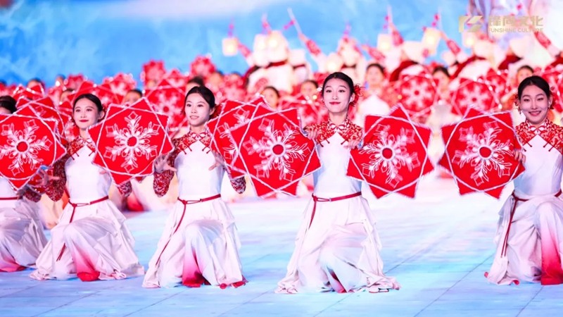 开幕式上,学生们为现场观众表演了舞蹈《冰灯启梦》,用优美的舞姿和精湛的技艺,将独具地域特色的热情、喜庆、红火的东北秧歌手绢与冰雪元素完美融合,把体育的极燃升华到艺术的极美,把哈尔滨冰雪世界的极寒升华到亚洲同心的极暖,瞬间点燃了现场氛围,向世界展示了中国冰雪文化的独特魅力和新时代青年学子的蓬勃朝气。