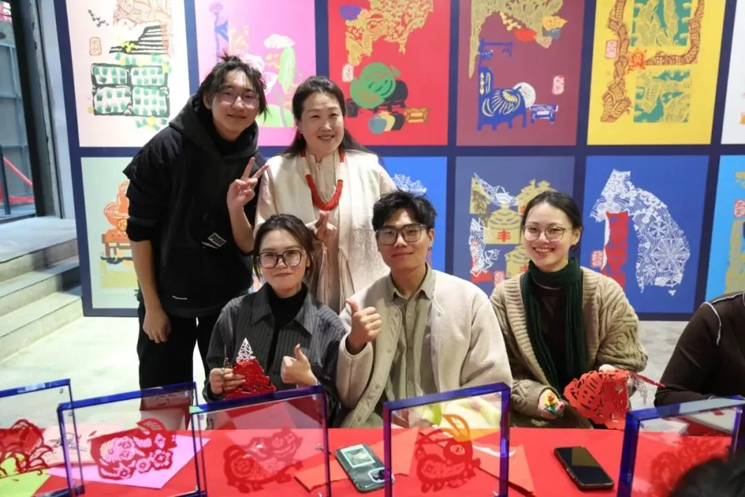 在互动体验环节,倪秀梅教授与剪纸工作室的老师们耐心指导每一位剪纸爱好者,手把手示范剪纸方法,细致的讲解剪纸技巧。大家凝神静气,在一折一剪、一刻一镂间细细雕琢,将对马年的美好期许化作灵动纹样,把新春福气凝于指尖、藏于红纸之上,亲手完成专属自己的马年瑞意剪纸作品。